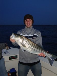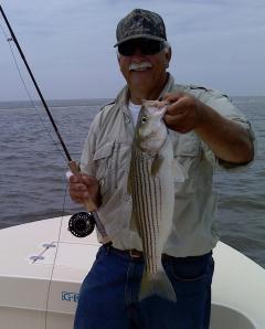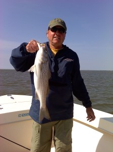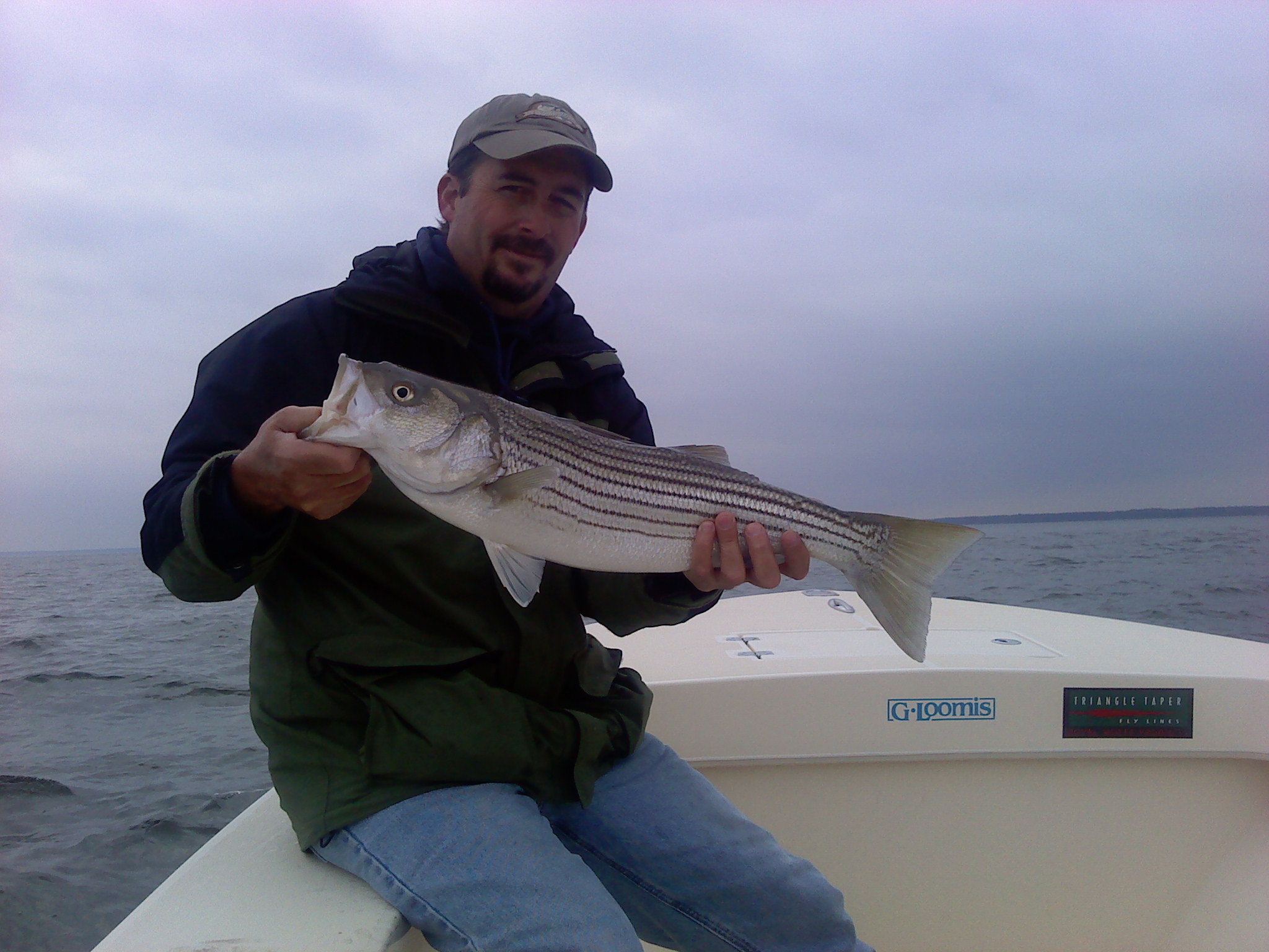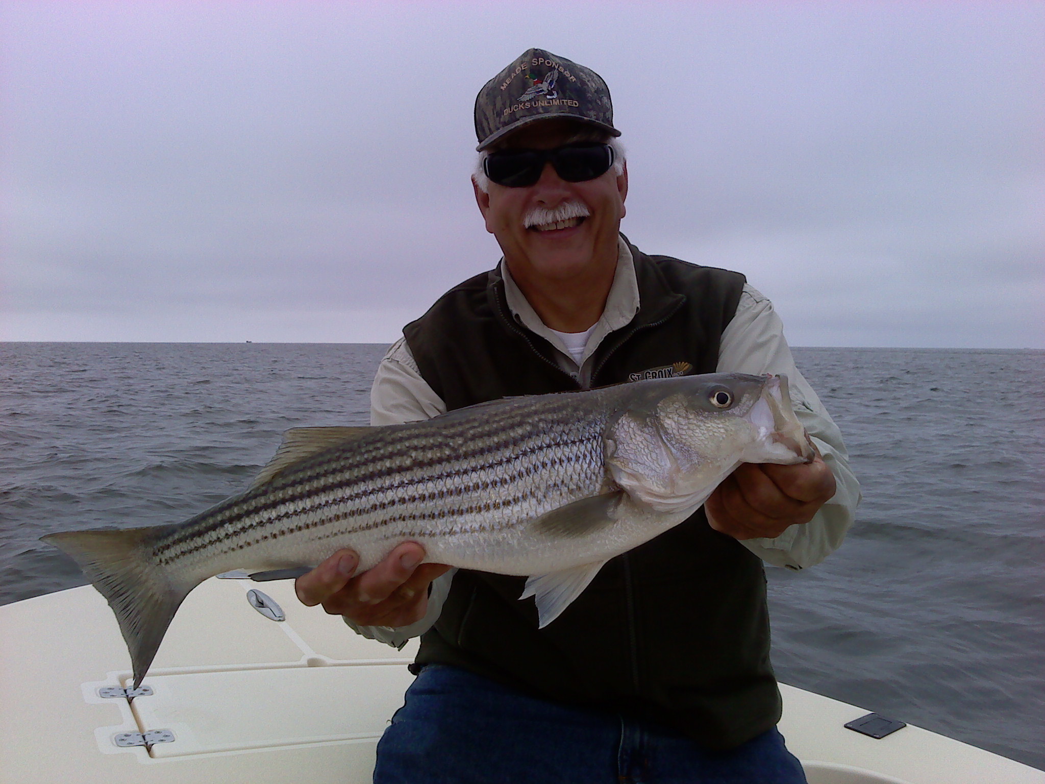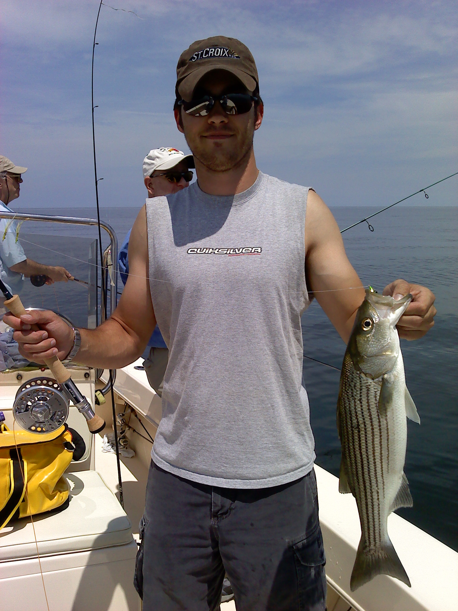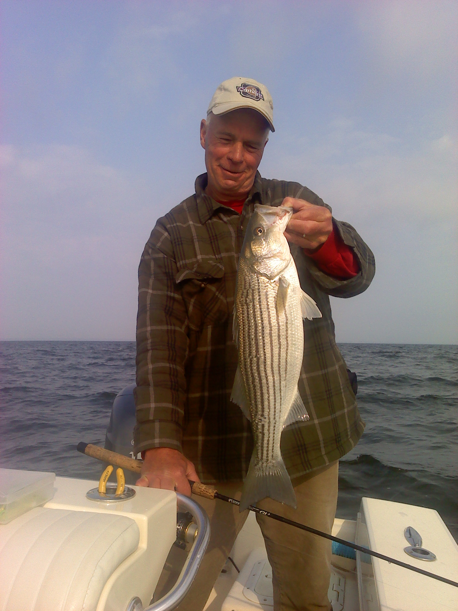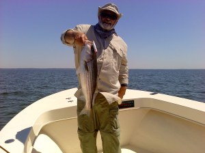 Monday, but a pleasant day on the bay with enough action so you had to pay attention. Should see the bluefish action increase any day and most are expected to be in the 2 – 4 pound range. Looks like the shallow water striper bite is shaping up to be a dawn or dusk proposition – at least for the bigger fish. Maybe I need to start setting the alarm a bit earlier. Barry Portnoy fooled the fish on the right.