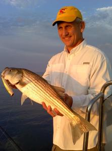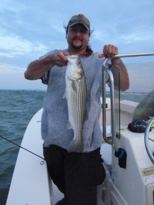 This past Monday was a scouting day for me and I managed to spot a few schools of breaking bluefish in the vicinity of Sharps Island Light. These were fairly nice fish in the two to four pound range. Right before dark I slipped into the shallows for some popper action and the rockfish were still there with one 30 inch fish brought boatside, along with several more in the 20 – 26 inch range. At one point the water erupted when a large school of rock ambushed a pod of silversides drifting through a shallow water tide rip. What a site to see in four feet of water.