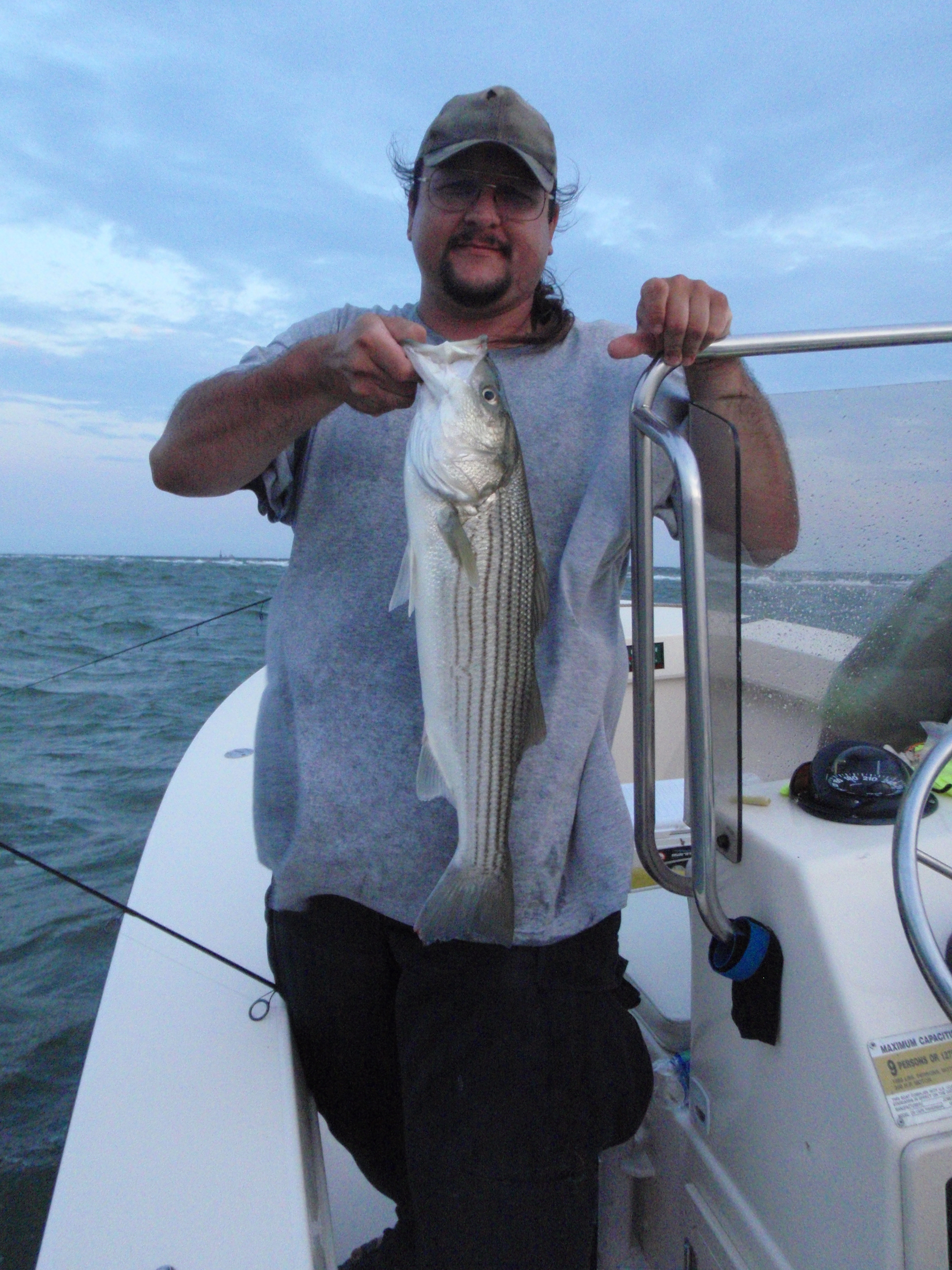 With a stiff 15 – 20K northerly wind greeting us as we entered the sound, we decided to head to the lee side of some islands and look for clean water. Found what we were looking for and after trying several spots we found some hungry stripers. While not coming in every cast the fish were of decent size, averaging 20 to 25 inches. Rob and George were the top rockfish producers, while Ernie added a few nice stripers and also boated three monster croaker to 17 inches.