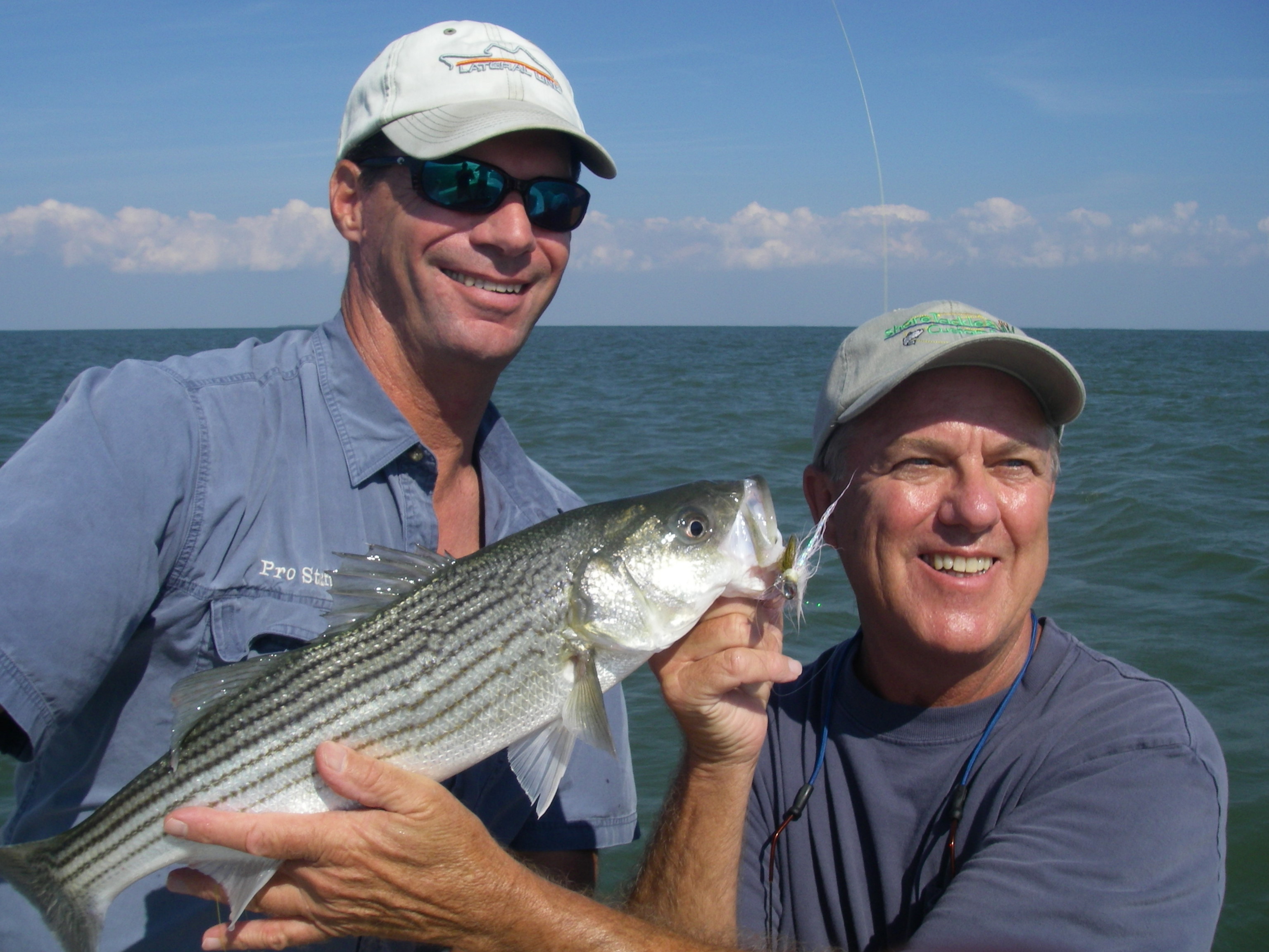 With perfect conditions, Saturday was all topwater. Rob was first to hook-up on a Stillwater Smack-it popper with a nice six pound striper. I believe Rob was also top rod for the day, he had that popper talking to ’em.