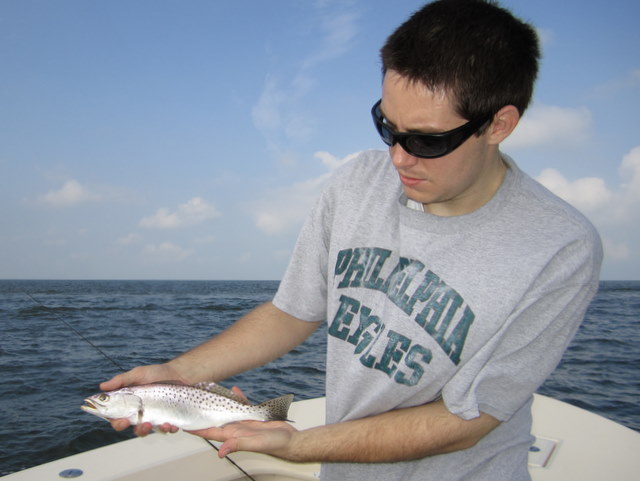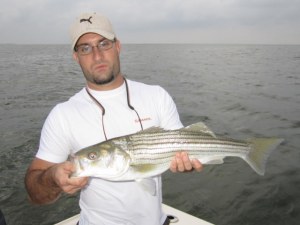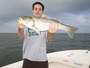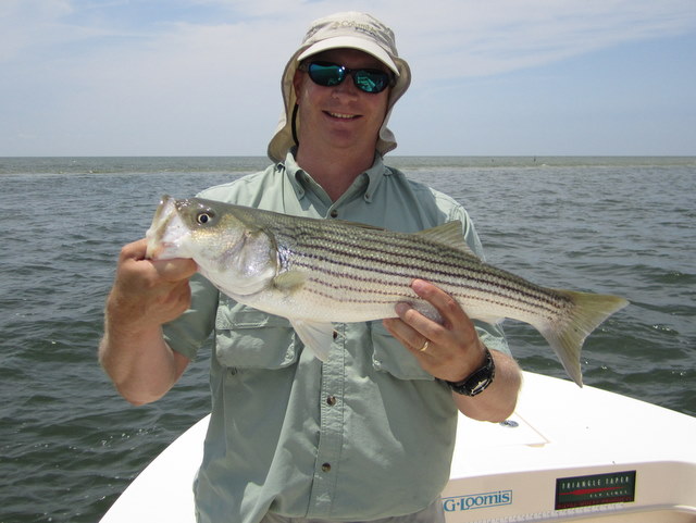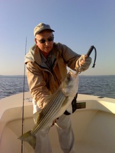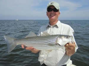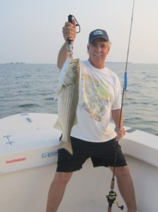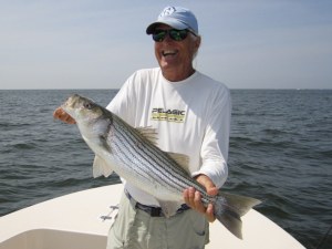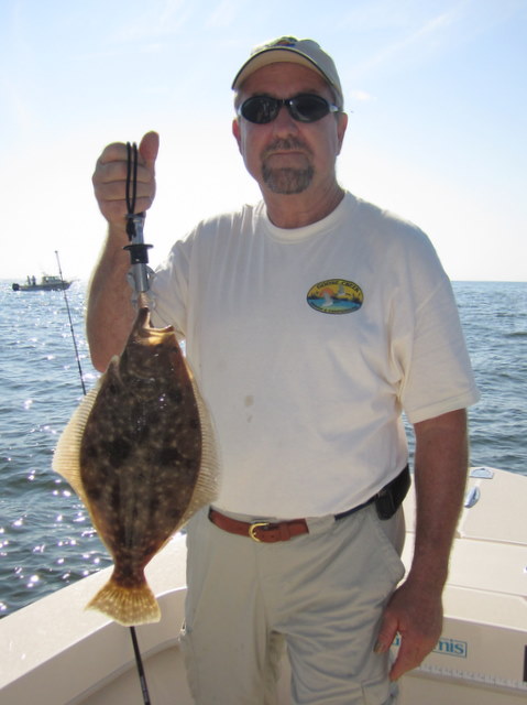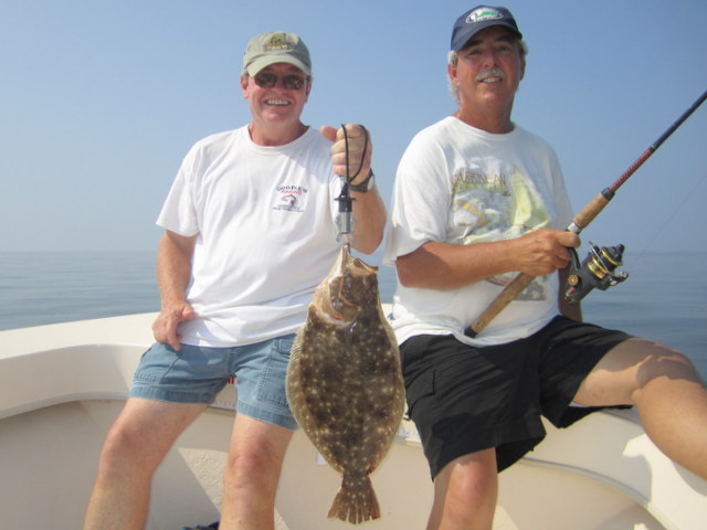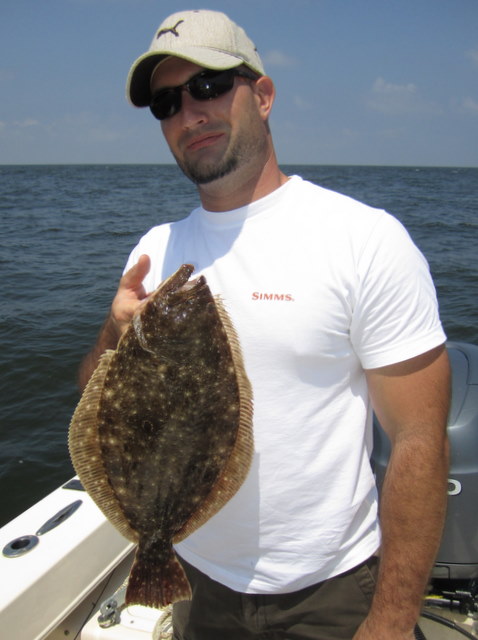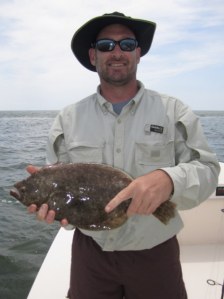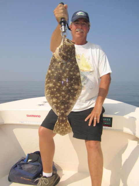 On Monday, July 11 I spent the day fishing with Scott Evander and Hovik Taymoorian, D.O., two great guys who last fished with me during a spring flats excursion. Scott and Hovic are great fishing companions, because they have just a super time no matter what the day brings. On this day it brought the wind. Our shallow water striper spot was muddy, so we decided to make an attempt at flounder. As we traveled to the mid-bay flounder hole, the waves were an adventure, but we felt completely safe in my Jones Brothers Cape Fisherman 20. When we arrived, the wind and tide were both heading north, so, in order to keep our jigs on the bottom I had to point the bow of the JB into the wind and use just enough throttle to maintain our position over productive bottom – a ‘power-drift’, if you will. It really worked okay; that is, until a flounder was hooked and then someone had to grab the net. As all hands were busy enough beforehand, this added an additional level of excitement to the entire process. We took turns with the net, and never lost a fish, but this was ‘extreme flounder fishing’ to say the least. While the fishing was by no means hot, we did salvage a breezy day and the guys were able to take home a few nice flounder for the table.