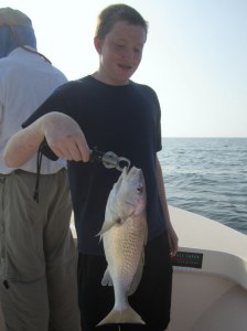 On a recent trip with Bert Massengale, his son Kyle, and Kyle’s friend David Pacy we tried our best to get some big flounder in the boat. I went to the exact spot where, just a few short days before, we slammed big flatties to 24 inches but we couldn’t draw a strike. The tide was perfect, with little wind but it just wasn’t meant to be. David did manage to perk us up with a very nice croaker. The fish really gave him a fight on his light spin tackle. We moved to another location and after a few drifts Bert managed the first keeper flounder. A short time later Bert pulled in the second flounder, a fish of perhaps 21 inches. That was it for the flounder. It was still a fun four-hours on the water, and Bert took home some beautiful fillets.