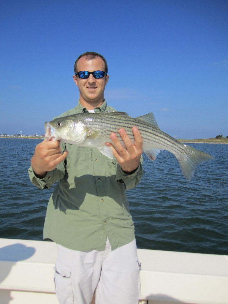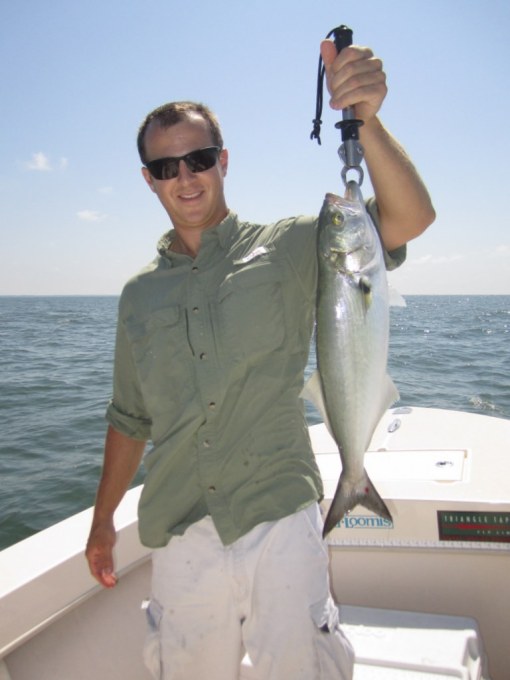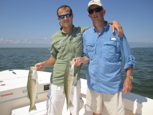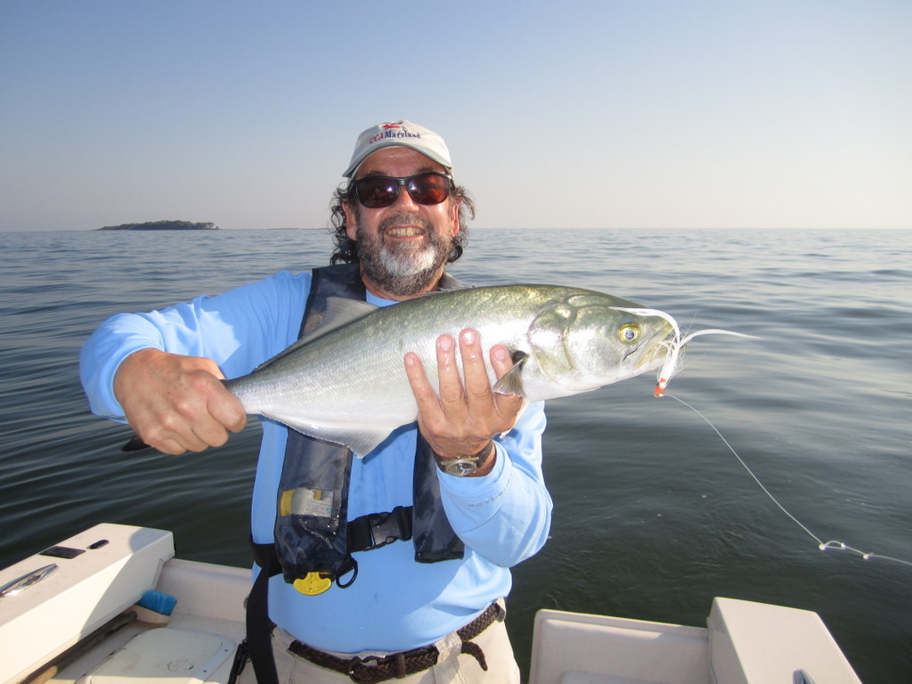Monday, September 12 – Today I had the pleasure to fish with The Frederick News-Post Outdoors Editor Jim Heim. Jim writes the Casts and Shots column for the paper and I was hoping upon hope that the fishing this day would be worthy of a small article. Boy, did the fish ever hold up their end of the bargain. We started the day near Tangier Island casting Storm Chug Bug and Stillwater Smack-it! poppers to ravenous rockfish in four feet of water. Most of the rock were in the 18″ to 24″ range, and they really put on a topwater show in that skinny-water. After two to three hours of nonstop action, we traveled across Tangier Sound to find hungry two to five pound bluefish ready for an encore. Only difference here was that there’s no quit in bluefish. Same lures, same surface explosions, but each fight lasted several minutes longer. I think Jim’s arms were sore at the end of the day. That’s a good thing if you’re a guide… See Jim’s article at the link for Casts and Shots.