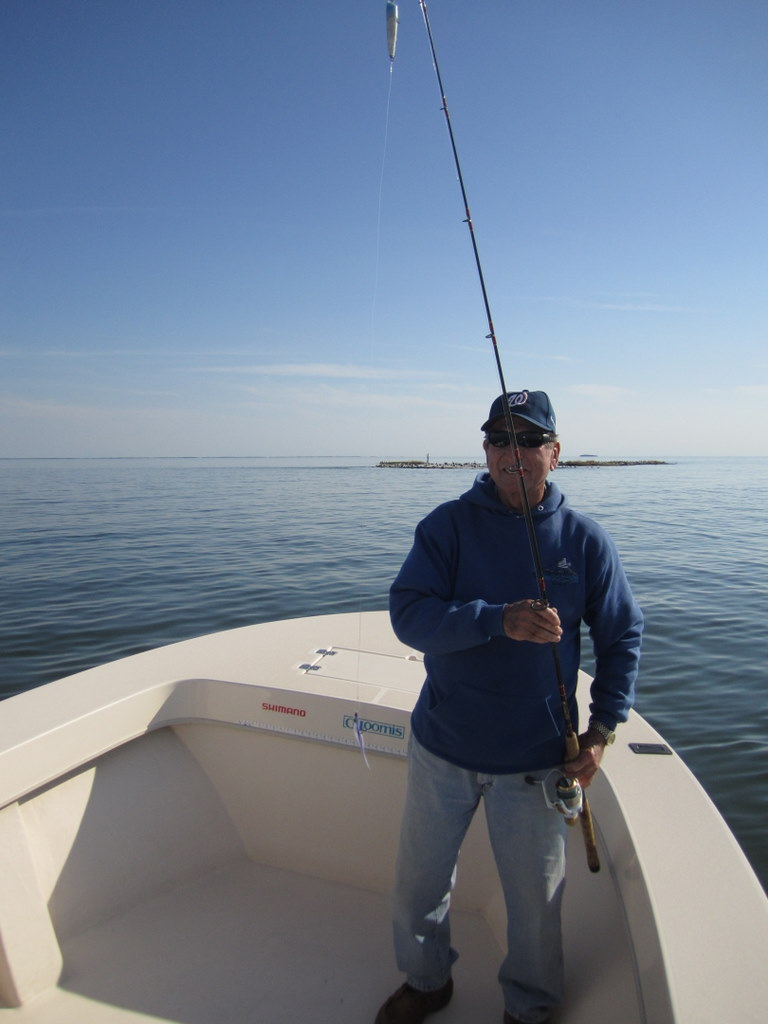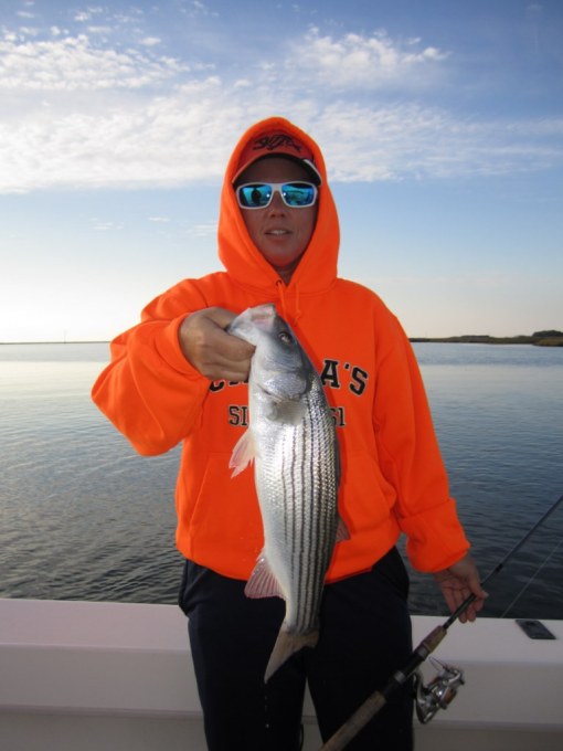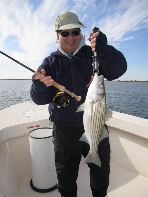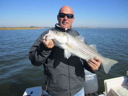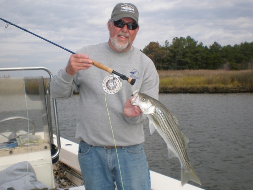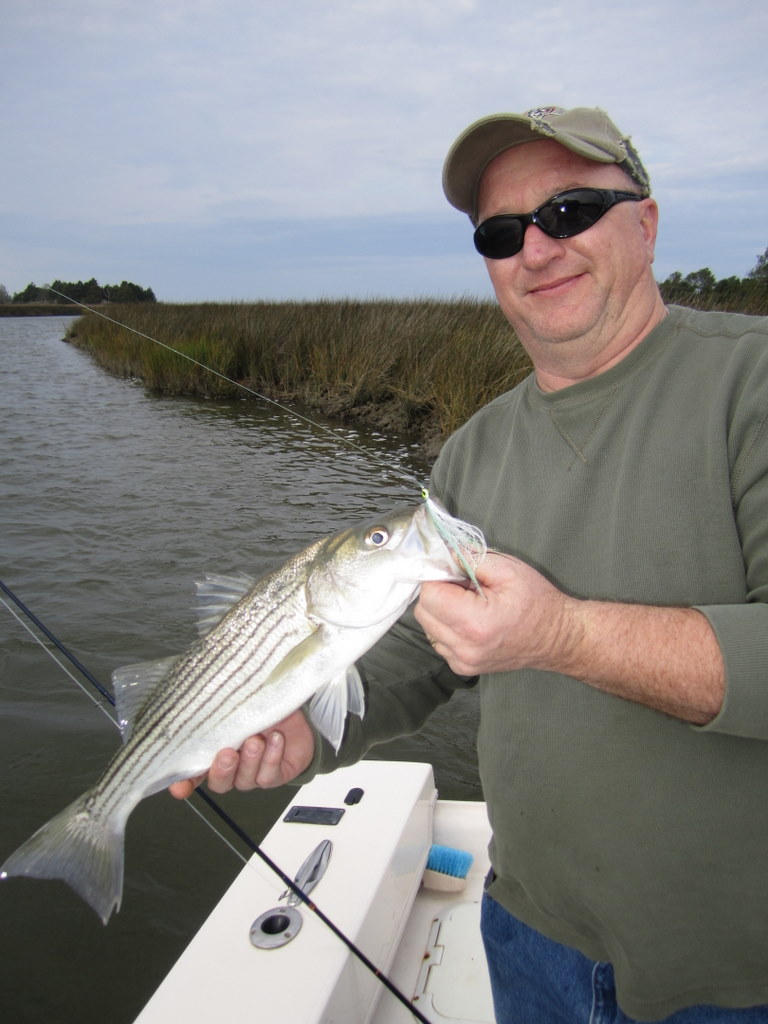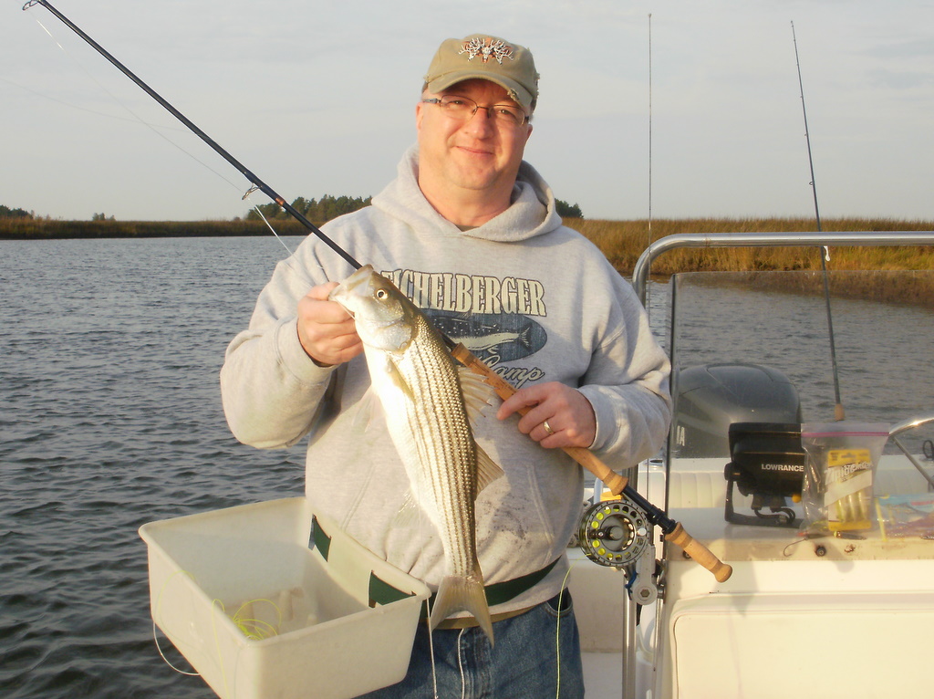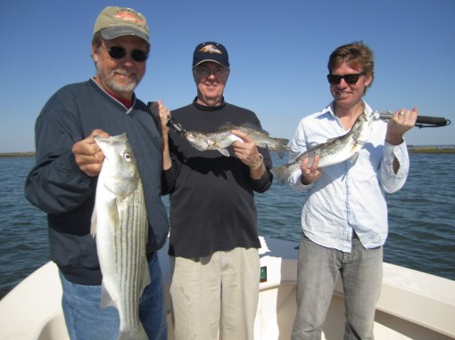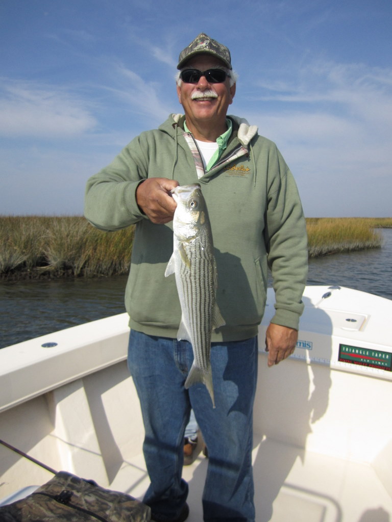 Tom Weaver, Dave Wood and Nick Shuck, USMC Col. Ret., enjoyed a beautiful fall day fishing the creeks and bayside shorelines of Smith Island. One secluded spot in particular brought a flurry of action with bigger stripers that kept this captain hopping like a barefooted kid on a hot tar road.