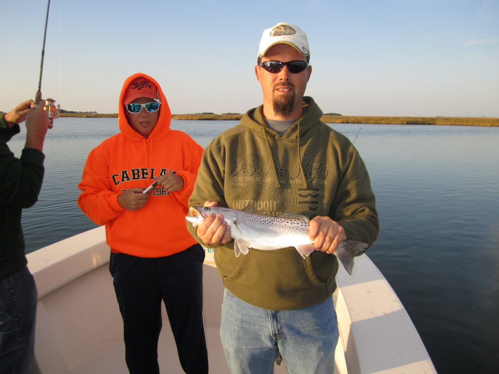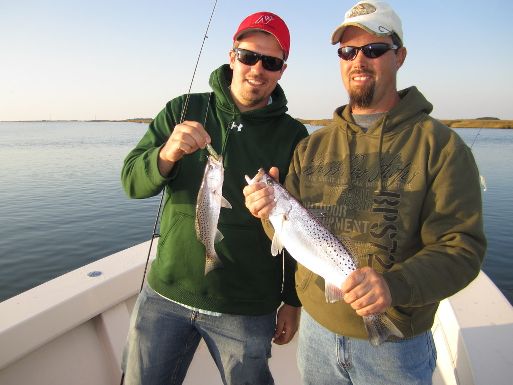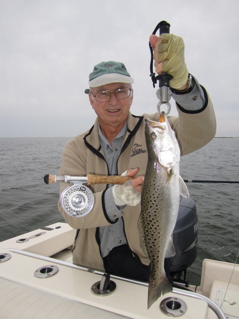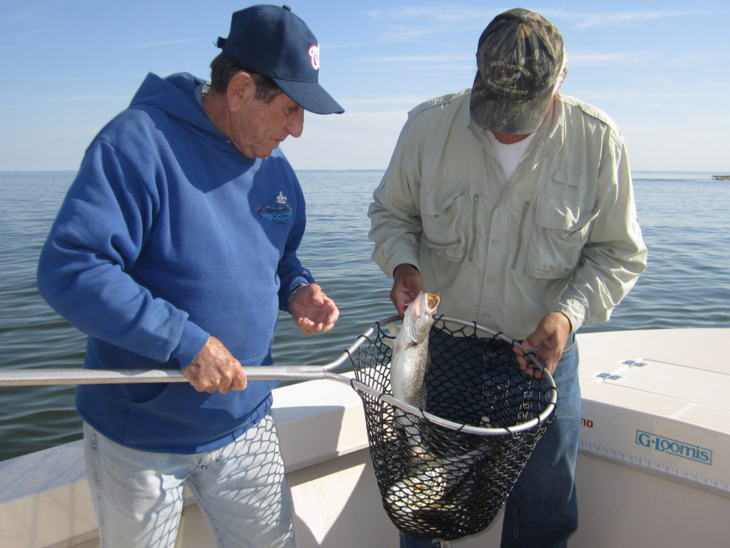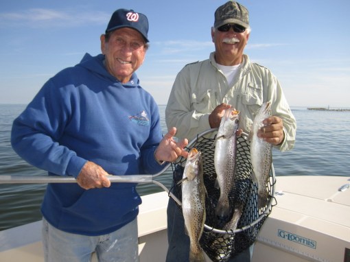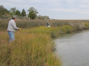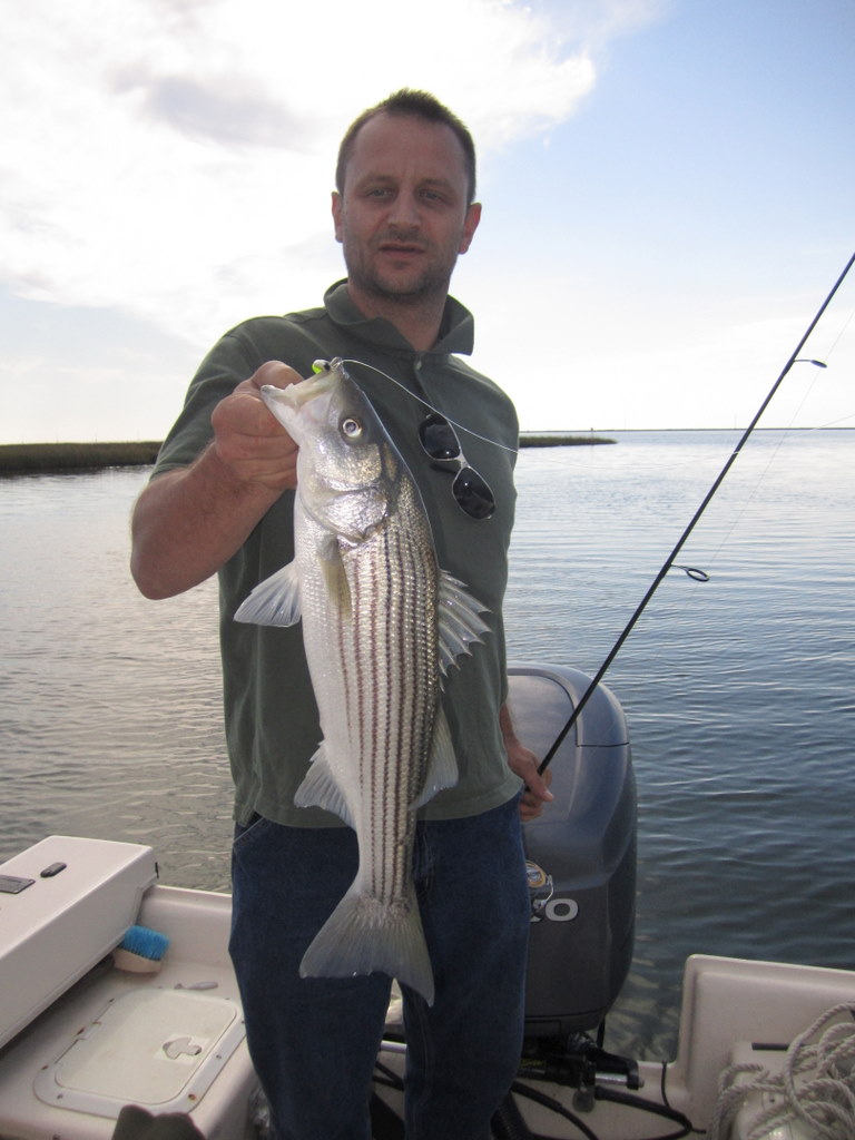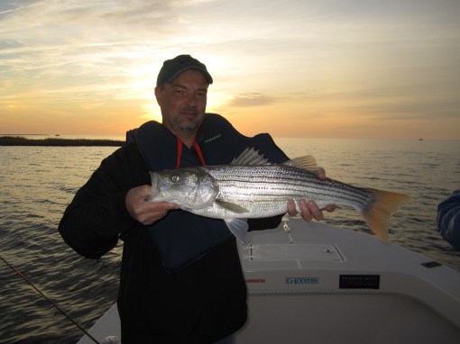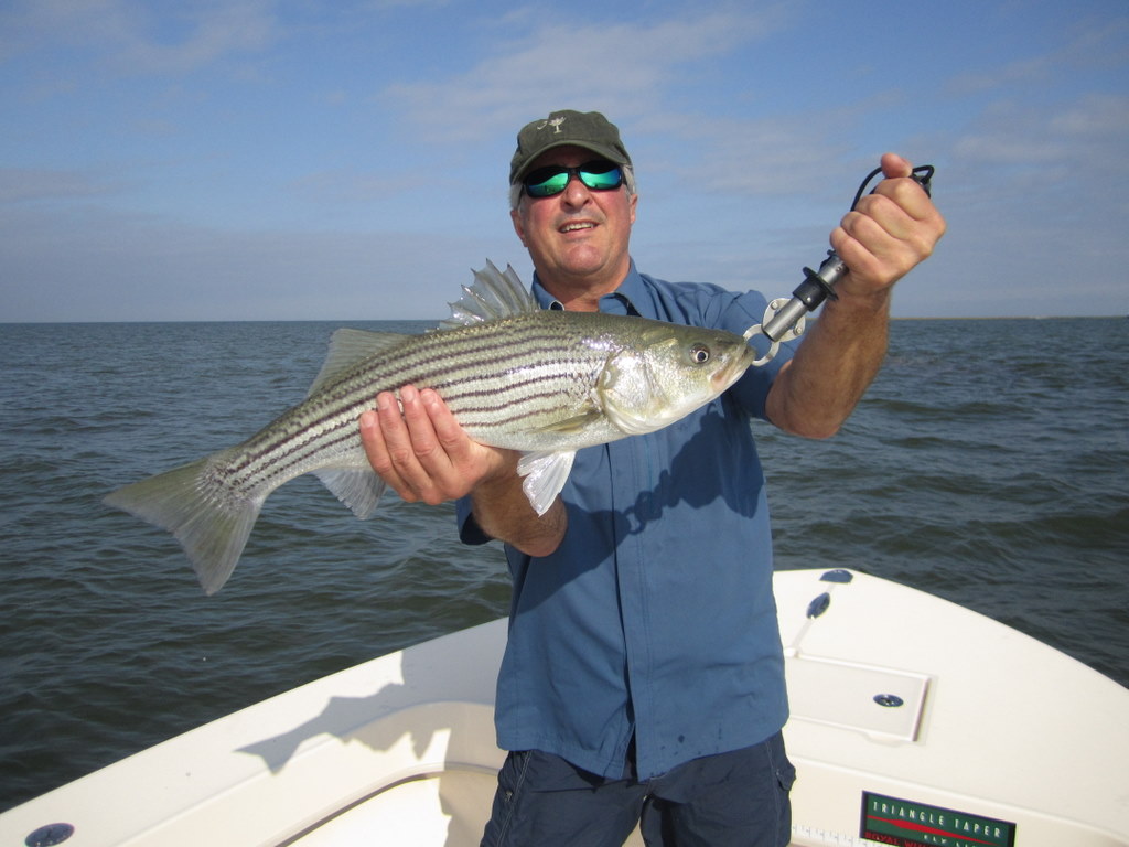 Tom Weaver, Dave Wood and Nick Shuck, USMC Col. Ret., enjoyed a beautiful fall day fishing the creeks and bayside shorelines of Smith Island. One secluded spot in particular brought a flurry of action with bigger stripers that kept this captain hopping like a barefooted kid on a hot tar road.