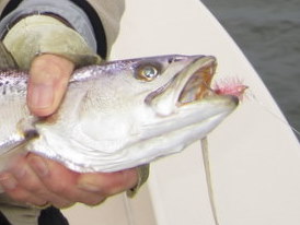 On Halloween day, Jack McKenna had a special morning while looking for rock in the tidal creeks of Smith Island. After a dozen or so nice stripers at our very first stop, we rounded a bend only to find rockfish exploding on the surface along the edge of a shallow flat. Jack tied a small popper on his 8 wt. and for two solid hours had rockfish from 18″ to 23″ jumping all over his topwater offering! Fly fishing doesn’t get any better than this!!