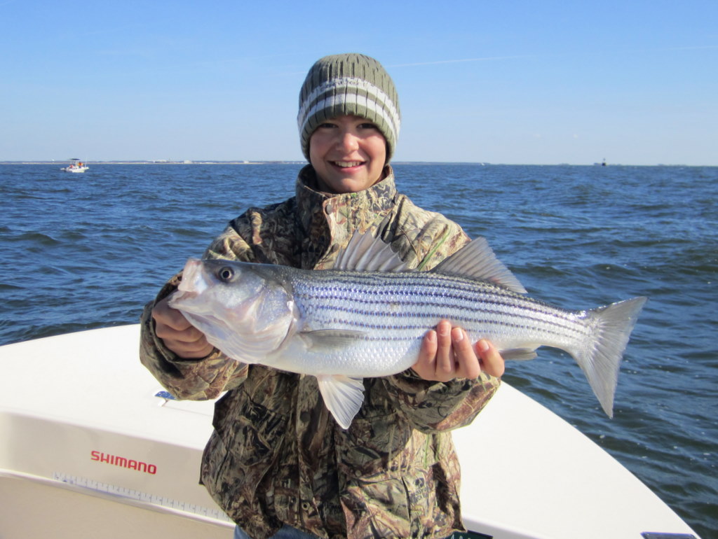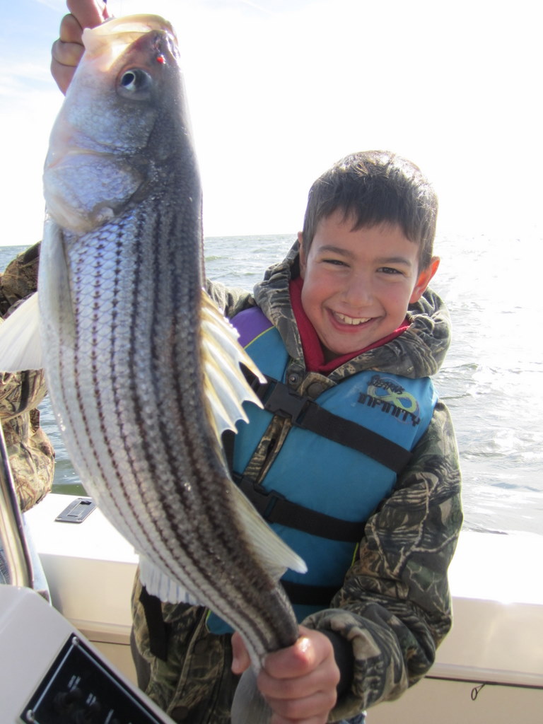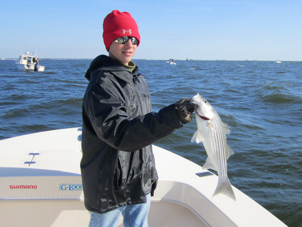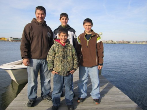 On Saturday, November 19, it was a treat for me to take Mark Horst and his three boys fishing out of Crisfield. His sons Kent, Shannon and Delvin turned out to be very good with the spinning rods. After a slow, cold morning – and a boat trip that seemed to cover Tangier Sound in its entirety – we found breaking fish right out in front of Crisfield at the infamous “Puppy Hole.” The boys had a blast pulling in rockfish to five pounds. Thanks for hanging tough guys!