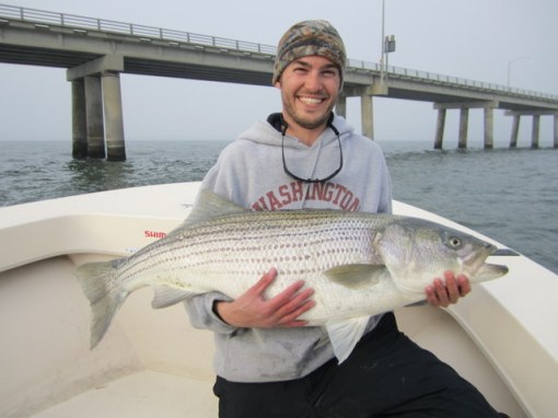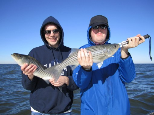 An early November trip brought Tim and Matt King down to Crisfield for some late fall rockfishing. The water was ‘slick cam’ in the morning, with some very nice rockfish caught around the sod banks of Smith Island. Someone flicked the wind switch around eleven o’clock and we hit zero to 25 in the blink of an eye. Made for a fun ride home. “Part of the adventure,” Tim said. Oh, Tim did manage to catch a “Diamond Jim” fish, but when he called the number on the tag he was told the tournament had expired. Sorry Tim.