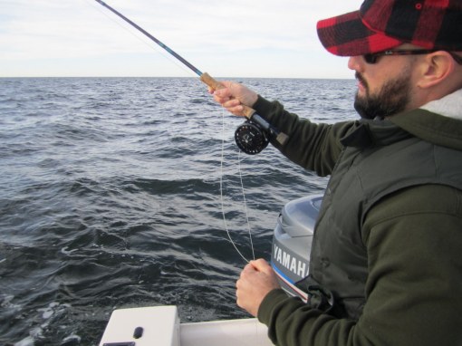 On Saturday, November 26, Justin Matoska and friend Kenny Fletcher enjoyed catching schoolie stripers on both fly and spin-tackle. We ran into working birds pretty much everywhere we tried, which was pretty much everywhere.. Kenny managed to master the fly rod and catch his very first saltwater fish of any kind on a fly. Thanks for being a quick study Kenny.