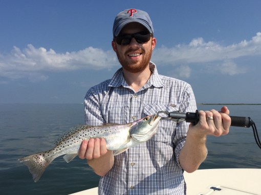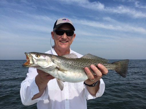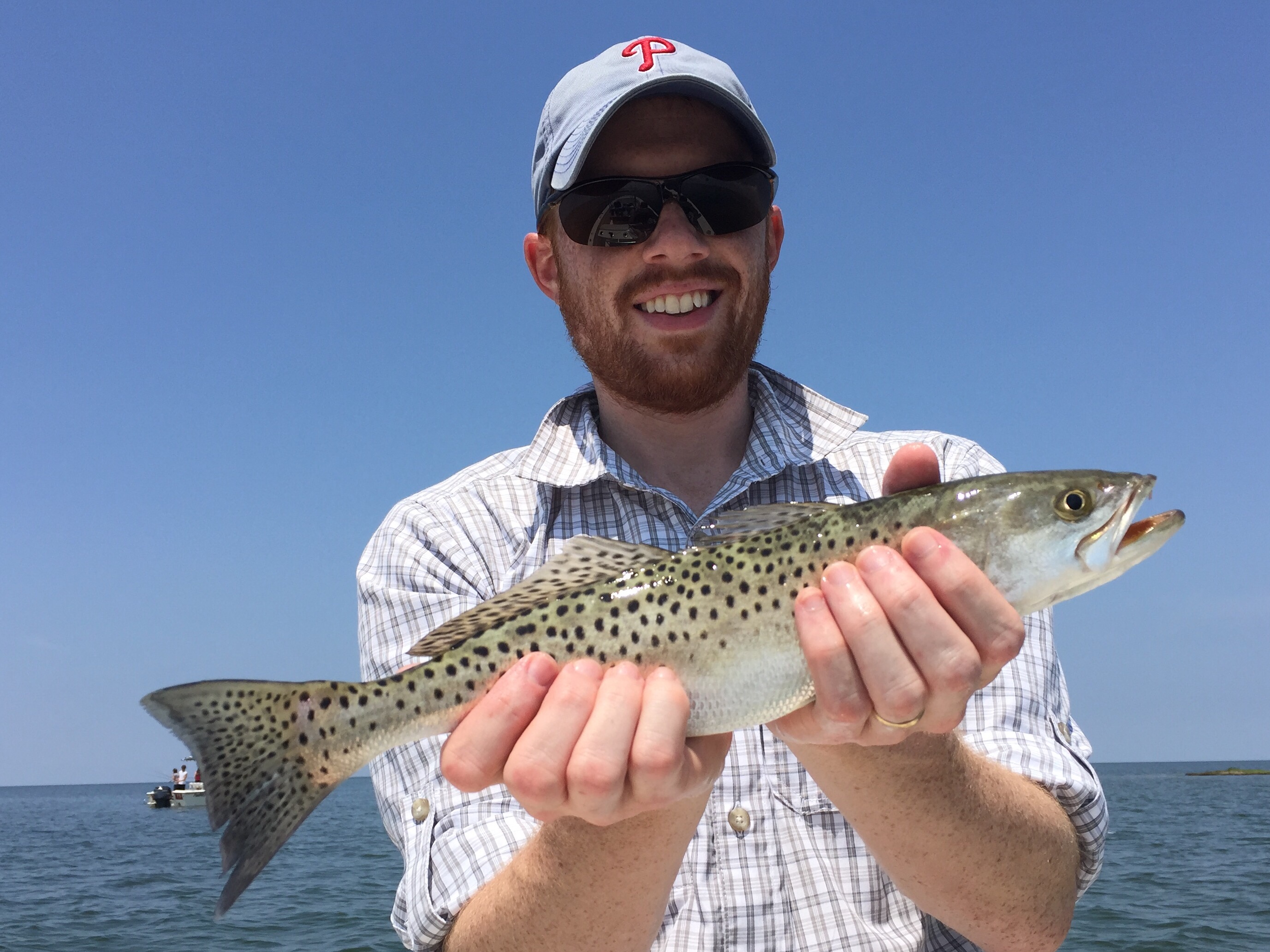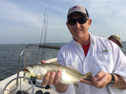 Tangier Sound speckled trout catches have improved of late. We enjoyed a couple of good days recently while casting   D.O.A. CAL Shads to stump-infested waters near the many marsh islands in this area. Rigged on a 3/8 ounce jig head the shad tail exhibits a remarkably lifelike swimming action that entices both specks and rockfish. Be careful while cruising the shallows near the islands as the centuries old stumps love to gobble-up bright, shiny lower units. Slow go is a must. I look for speck catches to steadily increase, with the peak sometime in late September.