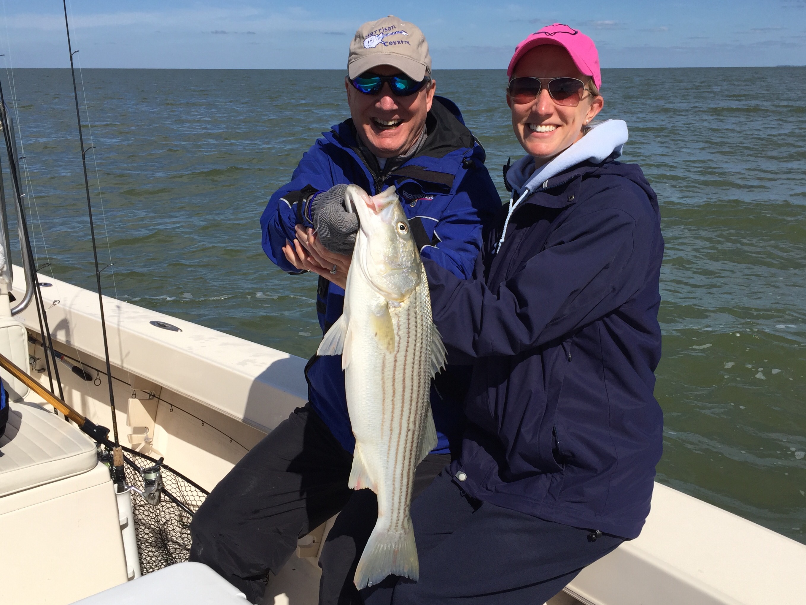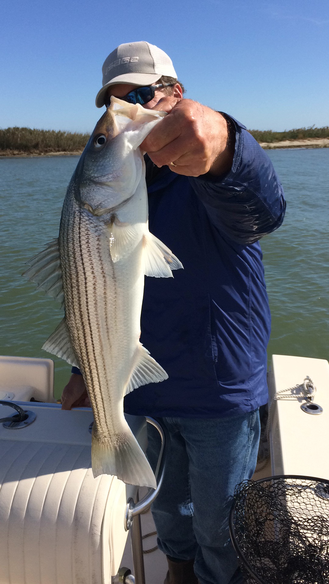 Fantastic shallow water rockfish bite is in full swing. Fishing the marsh edges and creeks of Tangier Sound anglers are catching 100+ stripers per day. Fly and spin fishermen are doing equally well. D.O.A. C.A.L. Shad Tail in 3″ and 4″ on a 3/8 ounce jig head is the top producer. Pearl or chartreuse are the only colors you will need. Half & Halfs for the fly angler. Look for the fish to get bigger as the water cools in the coming weeks. This hot fishing should last well into November.