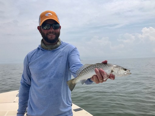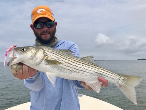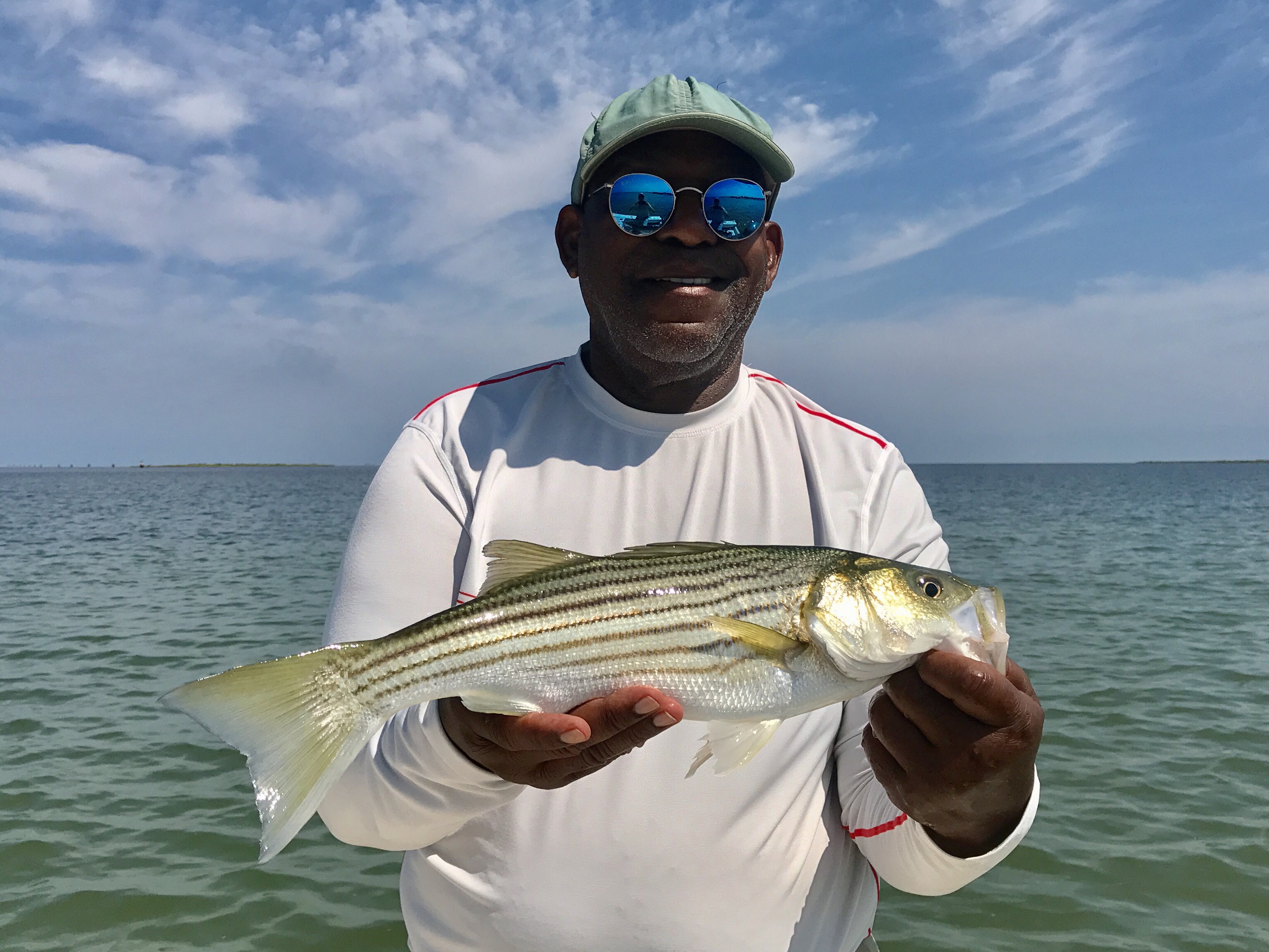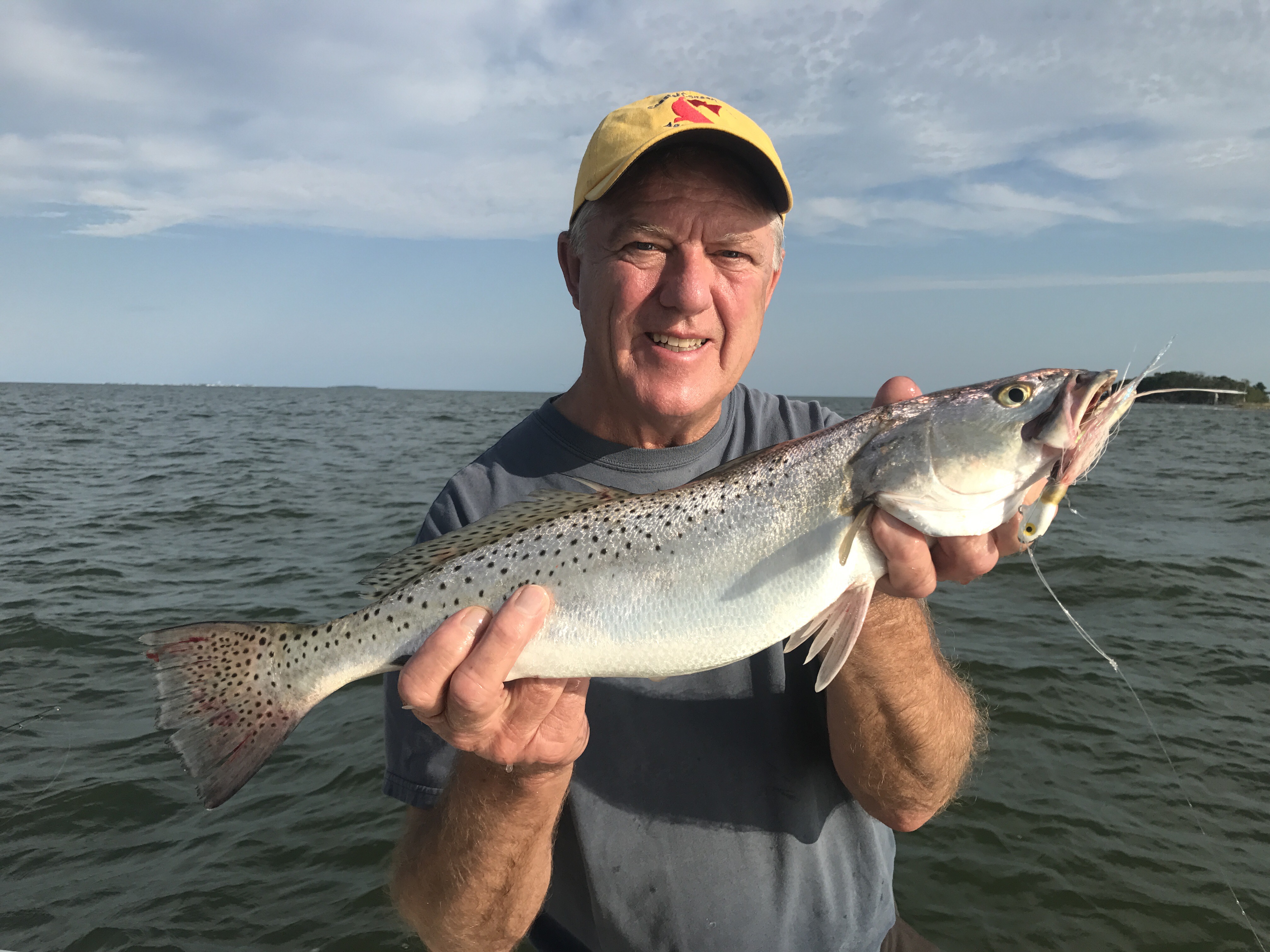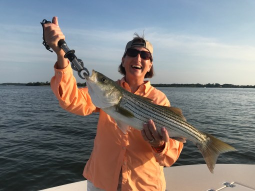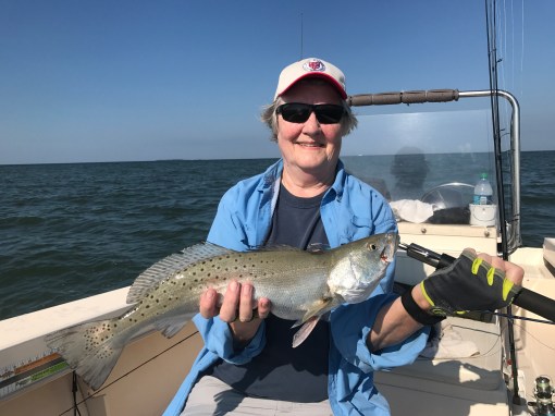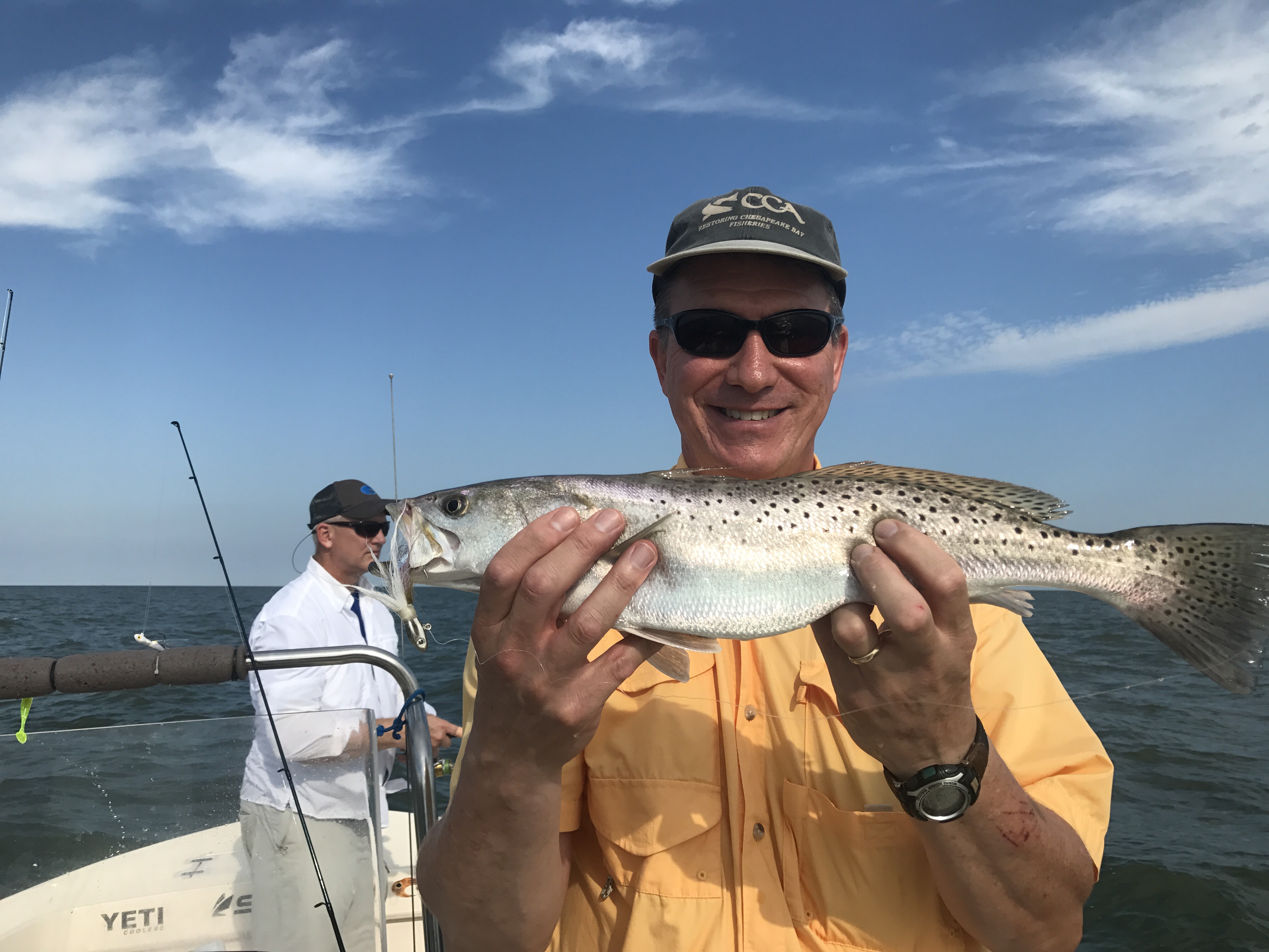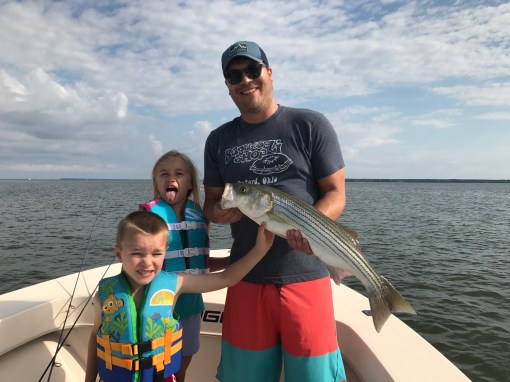 Fishing has generally been very good with wind as the determining factor. Light winds mean clean water and good fishing. Specks, stripers and bluefish have been the mainstay. Crisfield shallows have been hot over eel grass beds casting DOA CAL jigs with 3″ and 4″ shad tails. We’ve also made the occasional trip to Madison on the Little Choptank for fast action with breaking rock and blues.