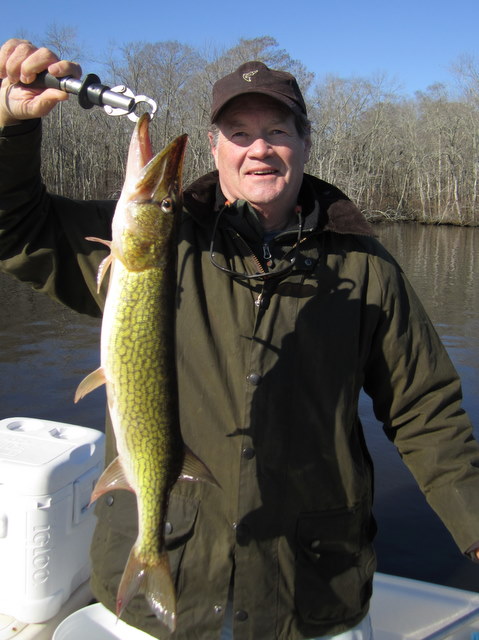 Yesterday, while crappie fishing on the Pocomoke, Tom Hylden and friends were pleasantly surprised by the good number of pickerel that ate our jig/minnow combinations. This should bode well for fly fishermen who seek to do battle with this aggressive member of the pike family. CCA MD is holding a Tidal Pickerel Championship and I believe the Pocomoke is as good a spot as any to take home the trophy. This is a “no bait” tournament, so if you would like to give the Pocomoke a shot give me a call and I’ll toss the minnows and concentrate on putting you on some good pickerel grounds. Back to yesterday’s trip, we did land maybe 30 or so crappie to 12-inches, along with a few bass to sixteen. Our final pickerel tally was maybe ten, not too bad considering our crappie gear. It was a fun mid-winter day on a beautiful tidal river.